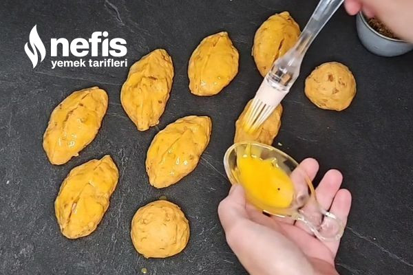 - Tüm bezeleri birebir biçimde hazırlayalım ve üzerlerine yumurta sarısı sürüp çıtır soğan serpiştirelim. Artık pişmeye hazır.