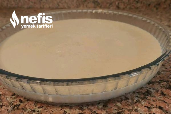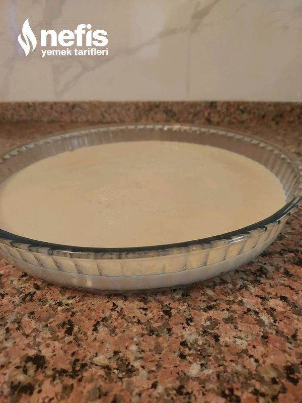 - Yapışmasın diye çeşmenin altında ıslattığımız süzdüğümüz borcamımıza döküyor ve ılıyınca buzdolabına koyuyoruz.