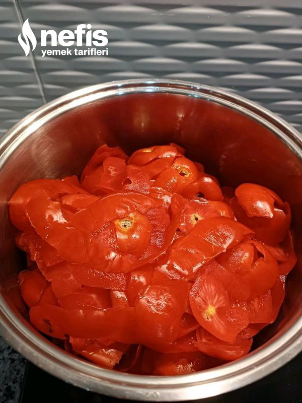 - İstediğiniz kadar domates kabuğu (Ben 4 kilo domatesden çıkan kabuğu kullandım)