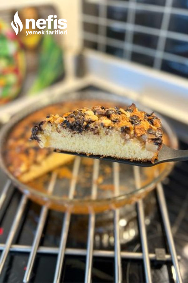 - Üzerine hafif iri dövülmüş cevizleri ve damla çikolataları serpiştirin.