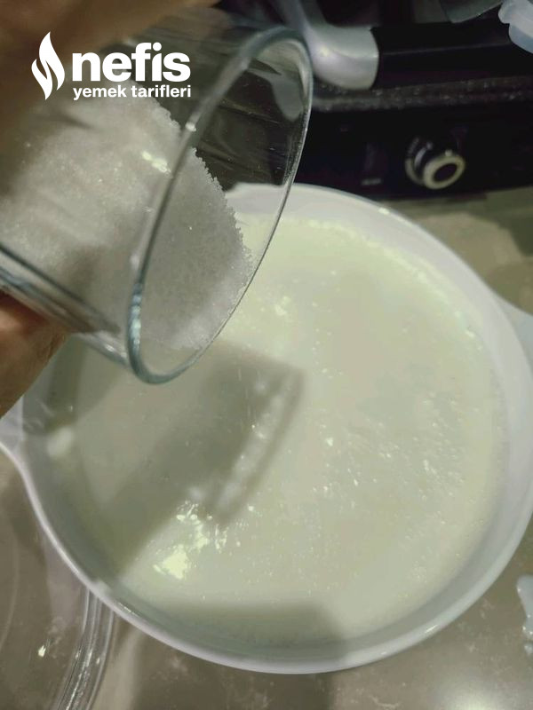 - Sütü ocakta ılıtıyoruz, şekeri ve şekerli vanilini ekleyip şeker iyice eriyene kadar karıştırıyoruz, sütü kaynatmaya gerek yok şeker erisin yeterli.