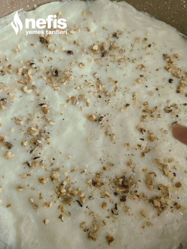 - Üç yaprak ıslattıktan sonra arasına ceviz serpiyoruz süt ve yapraklar bitene dek bu işlemi devam ediyoruz.