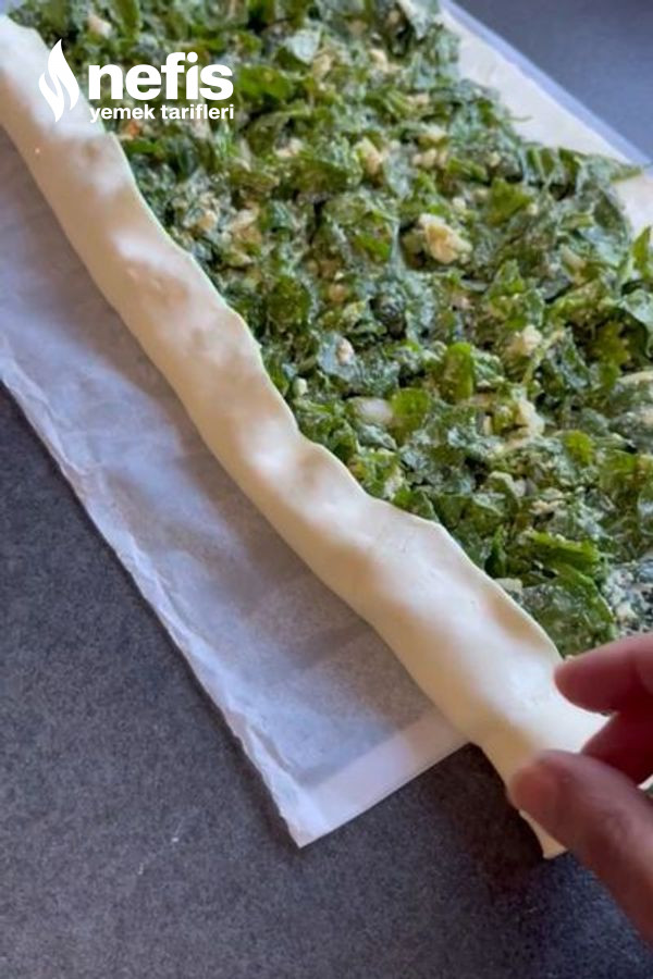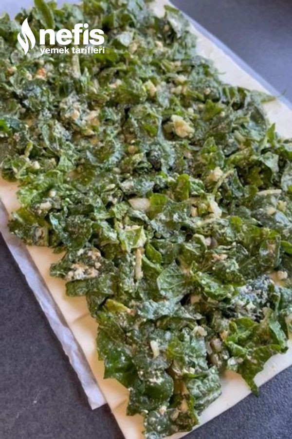 - Milföy hamurunu tezgaha koyup üzerine ıspanakları güzelce yayın.