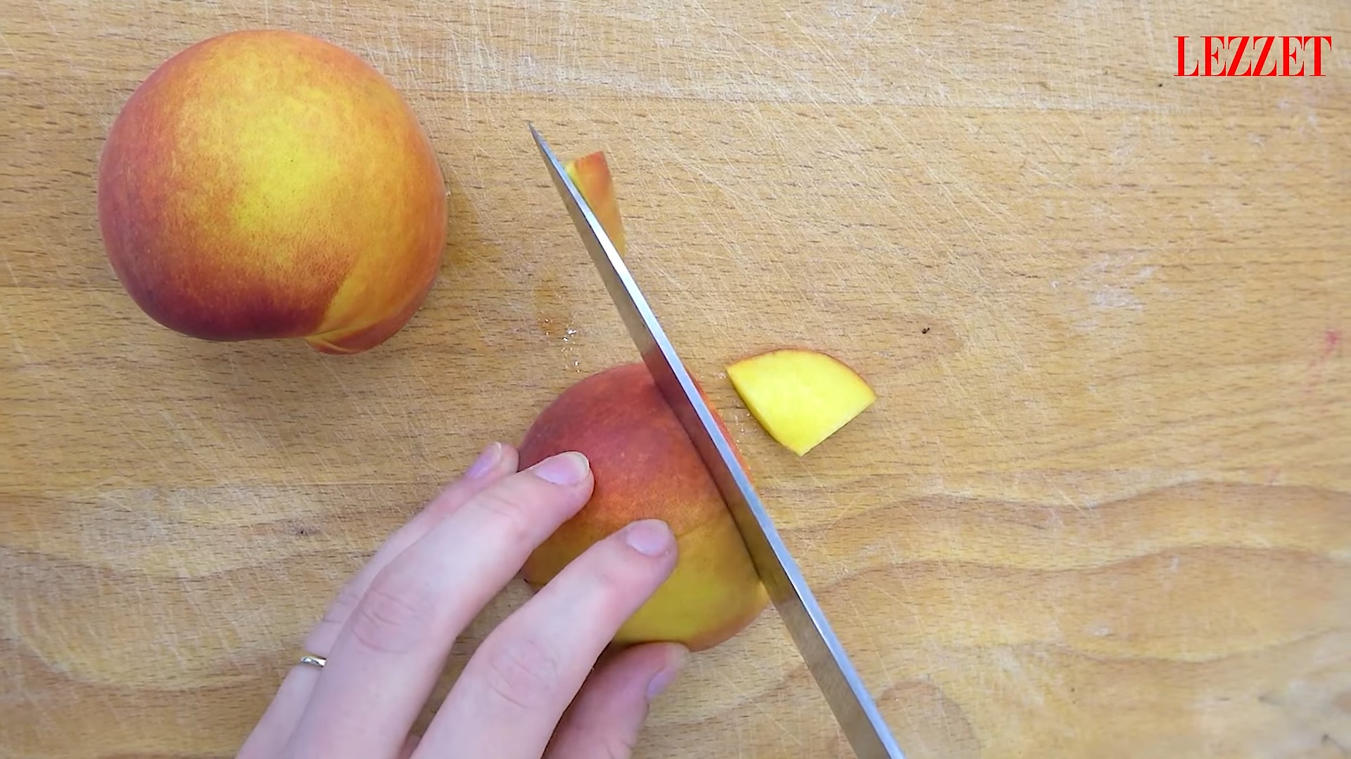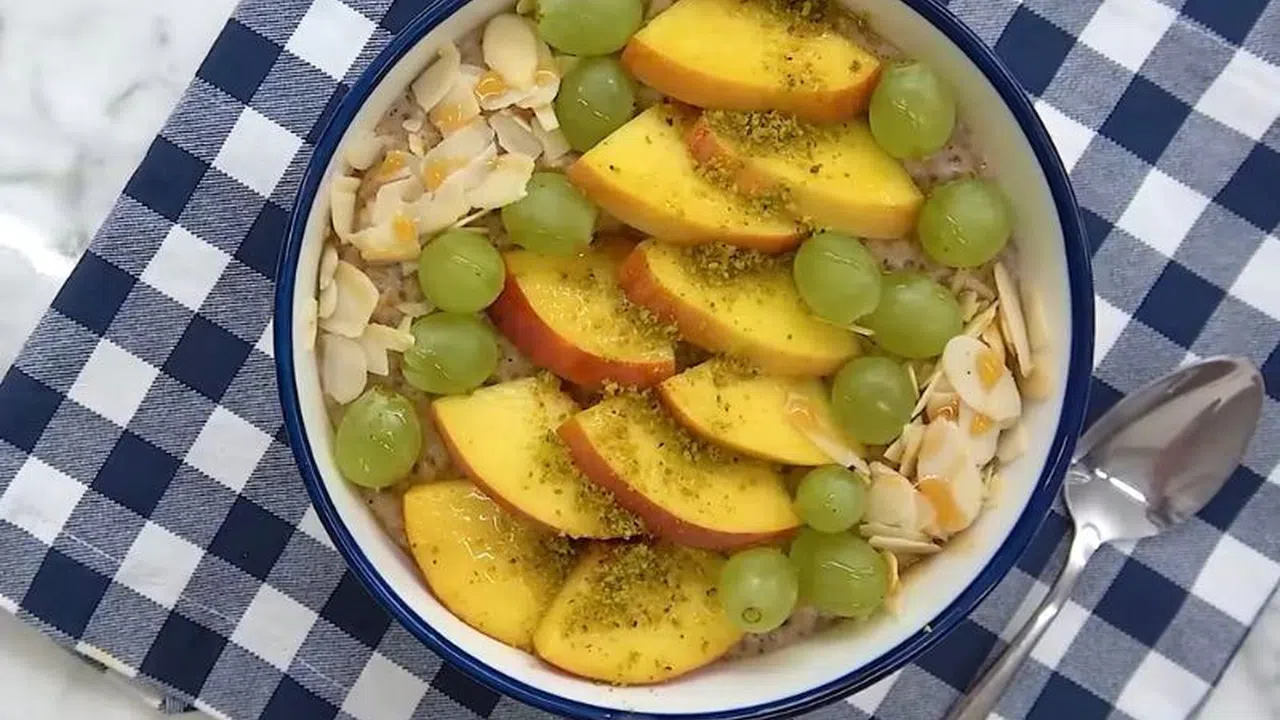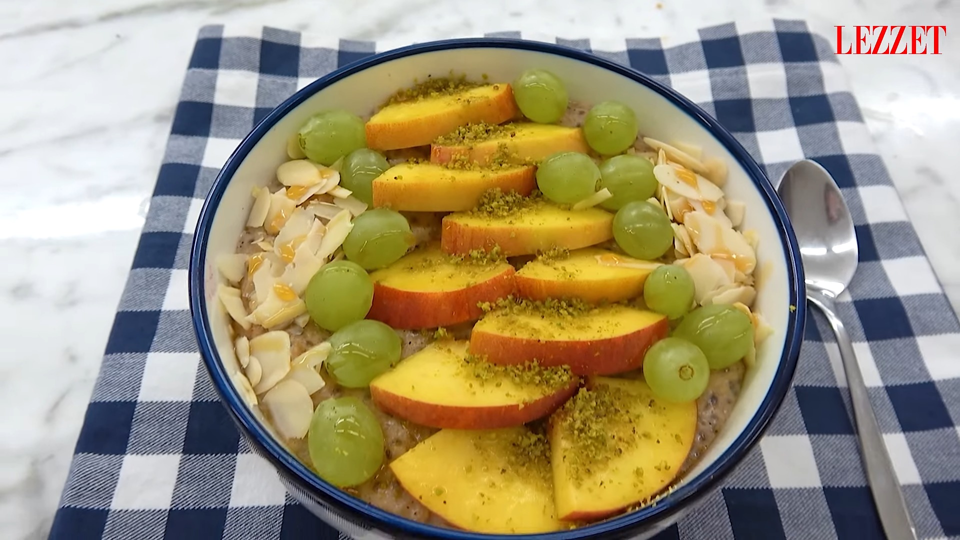 - Yulaf lapasının üzerine şeftali ve üzümleri yerleştirin.