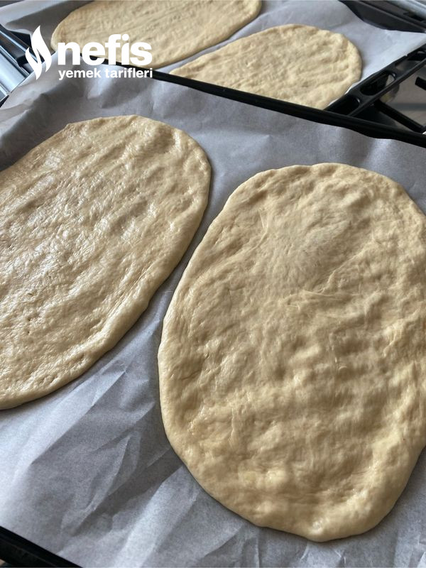 - Bezeyi elimizle hafif büyütelim içerisine hazırladığımız içten bolca koyup bezeyi iç harcı dışarı çıkmayacak şekilde kapatıp tabak büyüklüğünde olacak kadar elimizle veya merdaneyle açalım yağlı kağıt serdiğimiz tepsiye alalım.