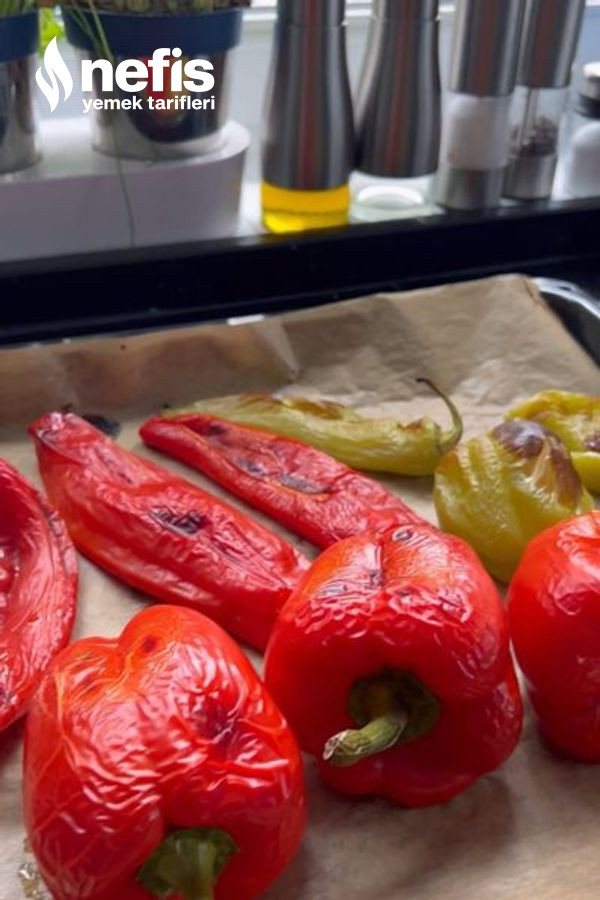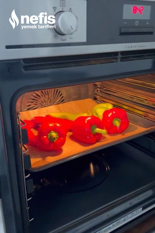 - Biberleri fırın tepsisine yan yana dizin ve 250 derecede yaklaşık 30 dakika közleyin.
