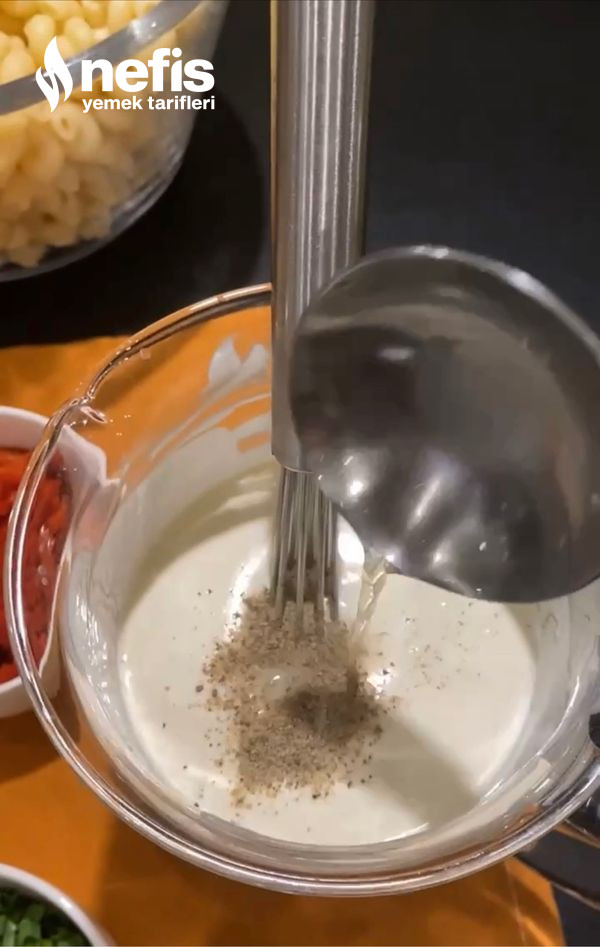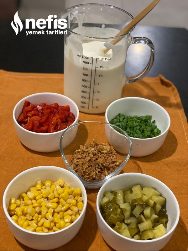 - Yoğurt mayonez karabiber ve turşu suyunu karıştırarak sos yapalım.