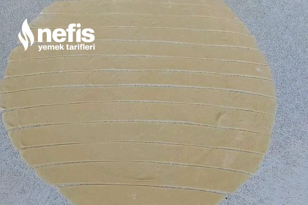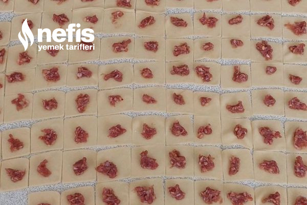 - Hamurumuzu açıp resimdeki gibi keselim ve içine hazırladığımız kıyma harcını minik minik ekleyip kapatalım.