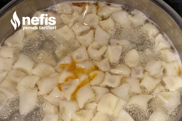 - Pişirmek için tencerede kaynatmış olduğumuz suyun içine mantılarımızı atıp pişirelim.