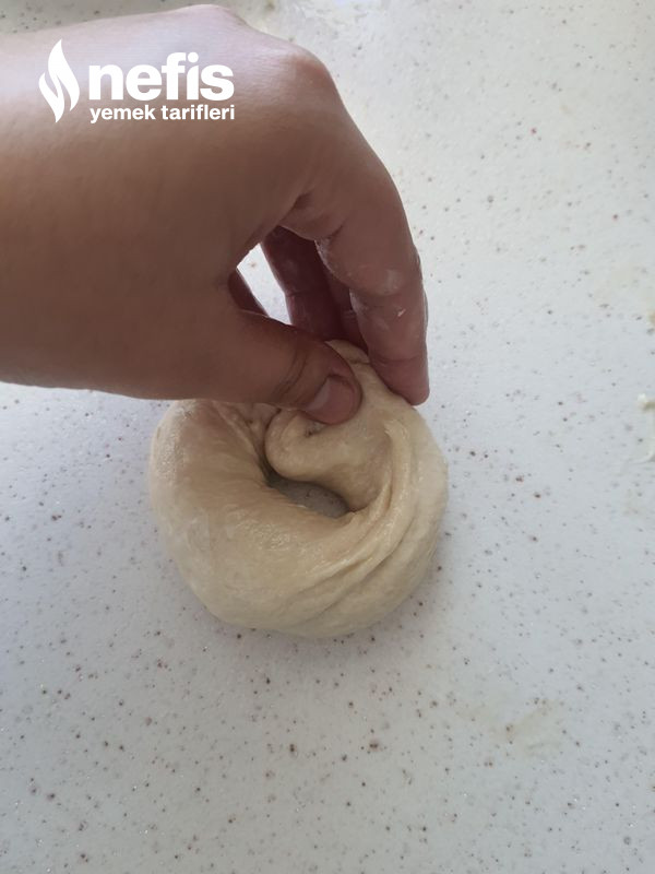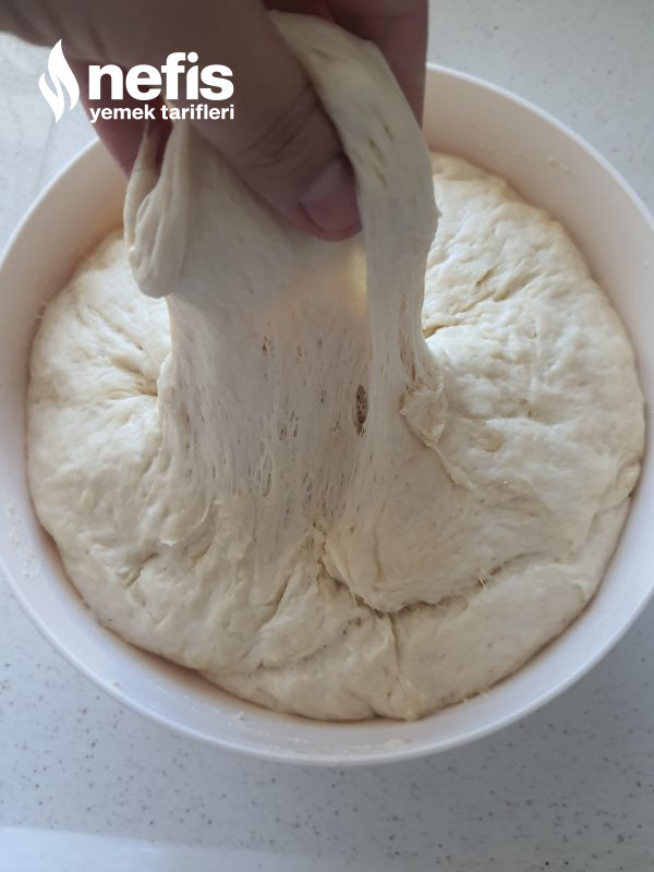 - Hamurumuz için gerekli malzemeleri yoğurma kabına alalım. Ele hafif yapışan yumuşak bir hamur elde etmeye dikkat edelim. 45 dakika mayalanmaya bırakıyoruz.