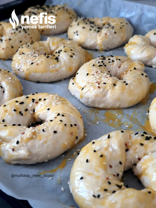 - Üzeri için; yumurta sarısı ve sıvı yağını sürüp susam ve çörek otunu serpin.