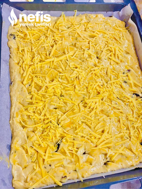 - Zeytinleri ve 1 su bardağı kaşarı da hamura ekleyip tekrar karıştırın ve unu ilave edin, ele yapışan yumuşak bir hamur elde edin.