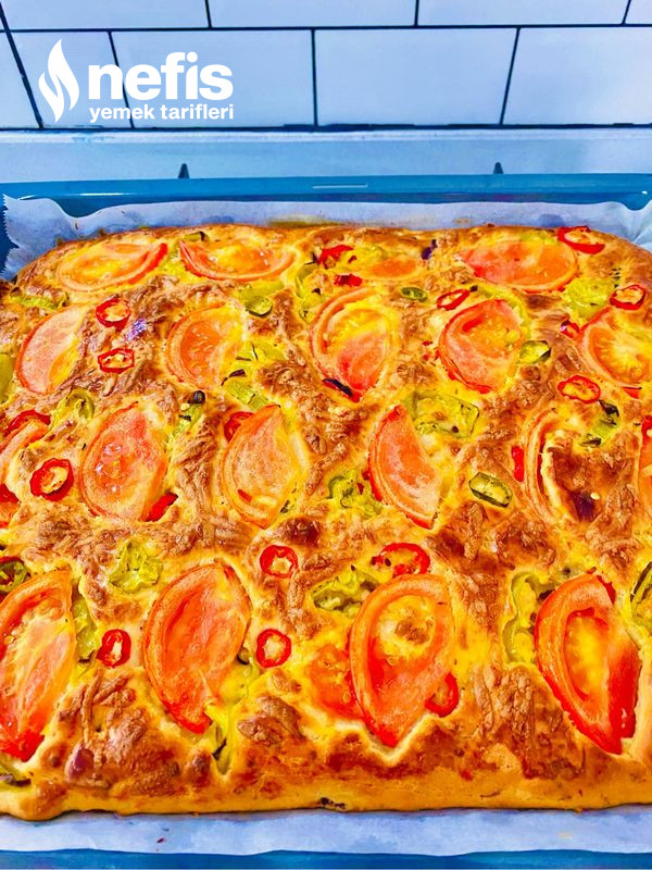 - Kaşar peynirini serpin, dilim dilim doğradığın domatesleri ve halka halka doğradığın biberler de güzelce yerleştirin.