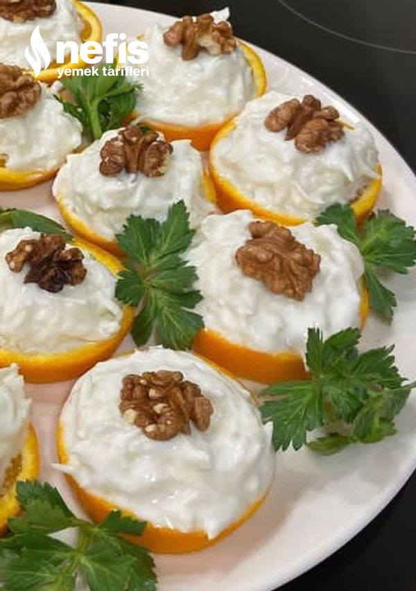 - Portakal dilimlerinin üzerine harçtan koyup ,üzerini ceviz ile süsleyerek servis edebilirsiniz ☺️deneyeceklere afiyet olsun ❤️.
