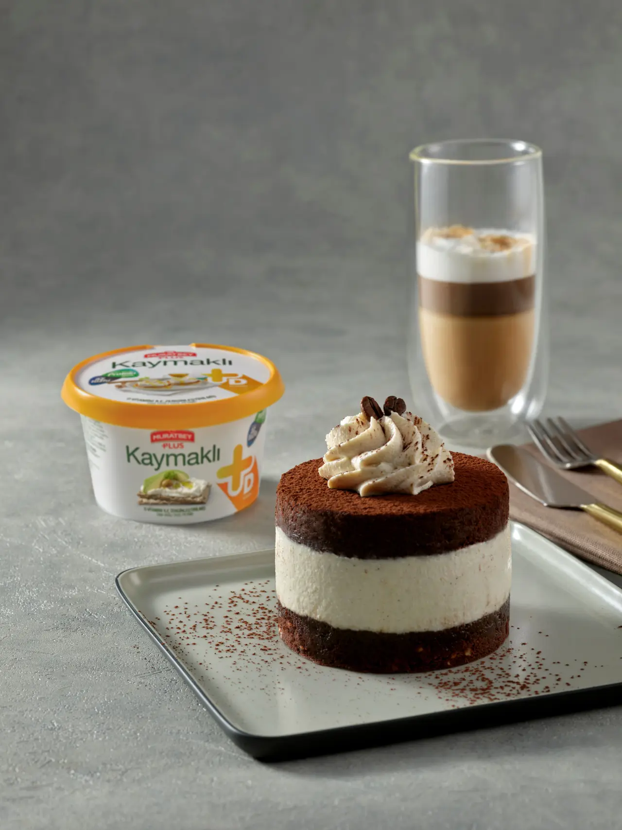 Yapılışı: Hazır browni keki yuvarlak bir mono pasta kalıbı ile keselim. Muratbey Kaymaklı ve toz Türk kahvesini karıştıralım ve bir krema elde edelim. Mono pasta kalıbına sırasıyla browni, üzerine Kaymaklı kremayı ilave edelim. Üzerine tekrar browni koyalım ve 30 dakika boyunca buzdolabında soğutalım. Mono pasta kalıbından pastanızı çıkartalım ve üzerine bir sıkma torbası yardımıyla Kaymaklı kremadan sıkalım. Pastanın üzerine toz Türk kahvesini eleyelim ve servis edelim. Afiyet olsun.