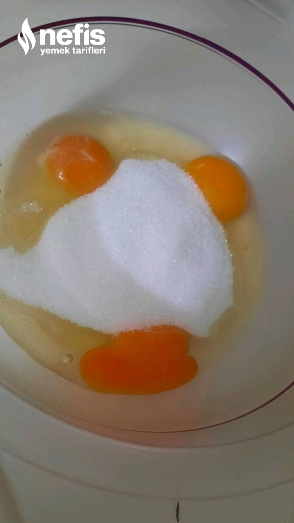 - Yumurta ve şekerimizi blender kullanmadan çırpıyoruz.