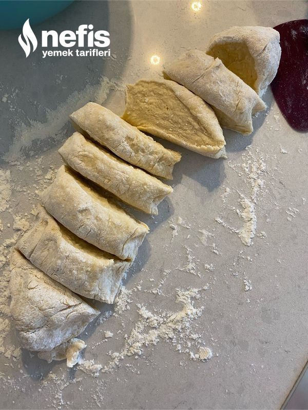 - Ele yapışmayan çokta sert olmayan hamurumuzdan sekiz eşit beze çıkaralım.