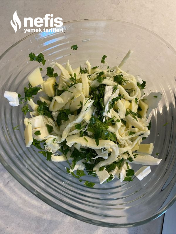 - Haşlama süreci bitikten sonra böreğin iç harcını hazırlayalım. Ben malatya peyniri çeçil peynir ve kaşar peyniri kullandım siz dilediğiniz malzemeyi ekleyip çıkarabilirsiniz.