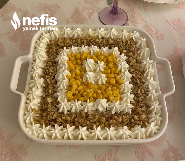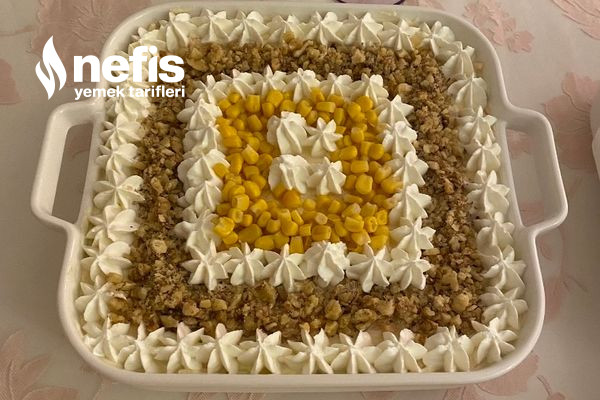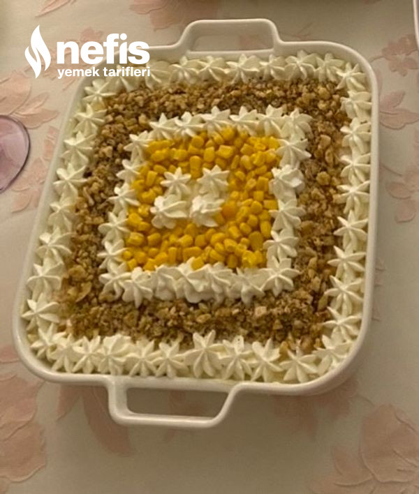 - Ben üzerini süzme yoğurt ceviz ve konserve mısır ile süsledim.