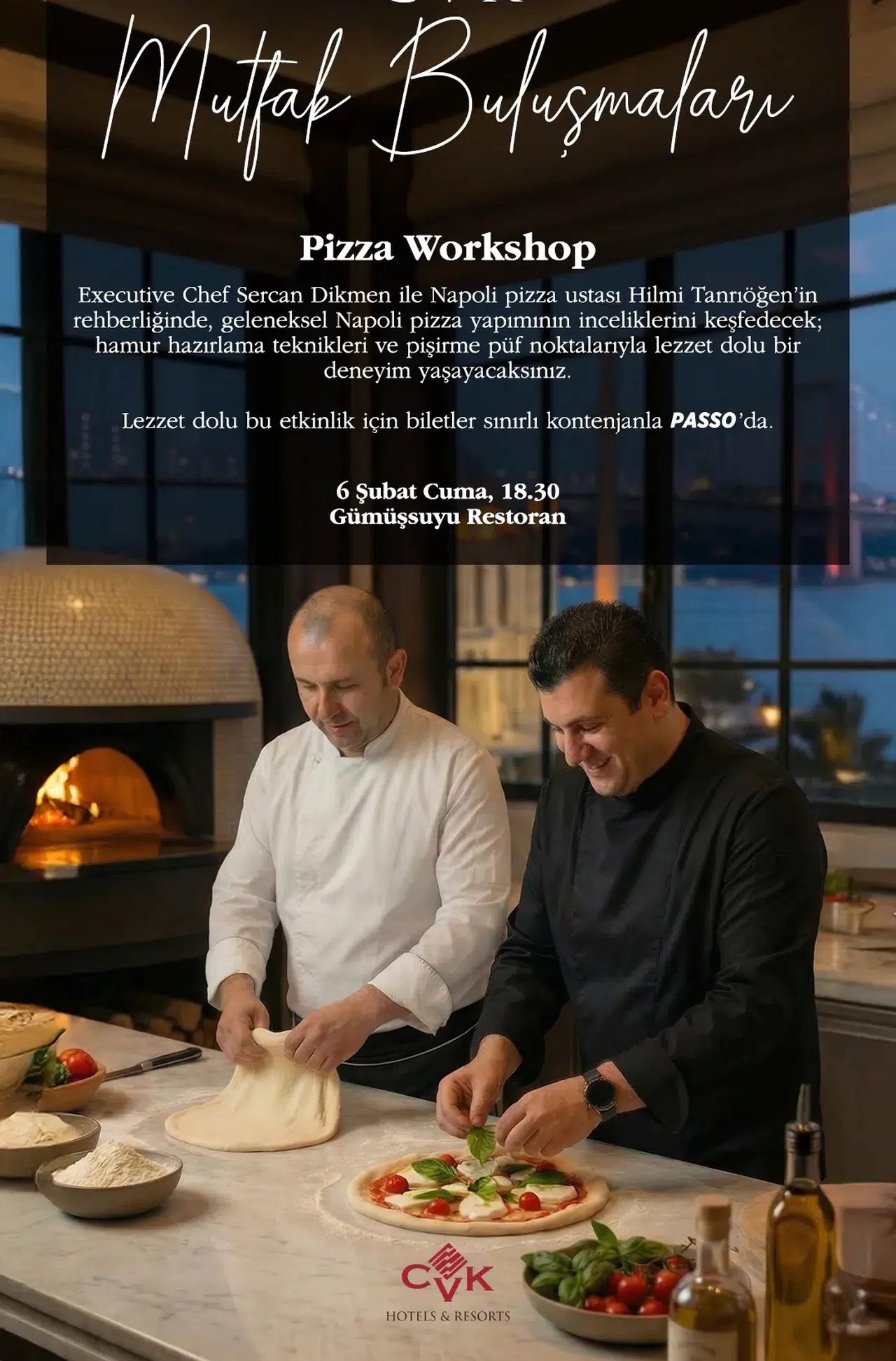 CVK Hotels & Resorts Grubu, lüks otel segmentindeki öncüsü CVK Park Bosphorus Hotel İstanbul ile lezzetseverlere unutulmaz bir deneyim sunmaya hazırlanıyor. "CVK Mutfak Buluşmaları" adı altında gerçekleştirilecek etkinlik dizisinin ilk serisi "Napoli Pizza Workshop", 6 Şubat Cuma günü Gümüşsuyu Restoran'da, otelin Executive Chef’i Sercan Dikmen ve ünlü Napoli pizza ustası Hilmi Tanrıöğen'in önderliğinde gerçekleştirilecek. Bu etkinlik, gastronomi tutkunlarını Napoli'nin zengin pizza kültürü ile tanıştırmayı amaçlıyor.