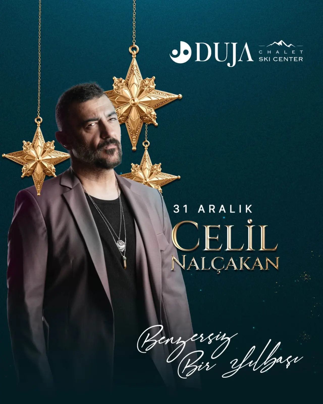 Yeni yıl coşkusu, 31 Aralık akşamı ünlü sanatçı Celil Nalçakan’ın sahne alacağı özel bir gala ile başlamış olacak. Bu özel geceye özel hazırlıklar yapan Nalçakan, geniş ve etkileyici repertuvarı sayesinde misafirlerine unutulmaz anlar sunmayı amaçlıyor. Gala etkinliği, şık dekorasyonlar, özel olarak hazırlanmış bir menü ve canlı performanslarla renklenecek. Konuklar, yılın en özel gecesini Duja Chalet’in benzersiz atmosferinde kutlayarak, yılbaşı ruhunu dolu dolu hissedecekler.