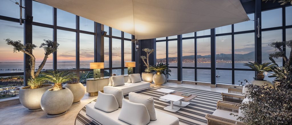 Doğal bitkilerle peyzajı gerçekleştirilen muhteşem terası ve terasındaki barı ile Penthouse, yılbaşı partiniz için İzmir’de eşsiz bir adres. Tamamı doğal ahşap mobilya ile tasarlanan Penthouse, merkezi ısıtma ve soğutma sistemi, yüksek teknolojinin hâkim olduğu oda otomasyonları, kişiye özel mutfağı ve estetik bir hava yaratan cam dekorasyonuyla benzersiz bir deneyim vaadediyor.