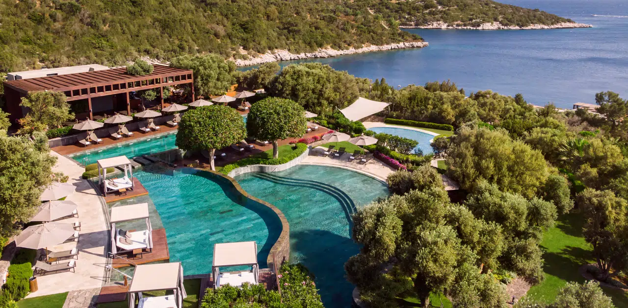Mandarin Oriental, Bodrum, Cennet Koyu’nda, Ege Denizi’nin muhteşem manzarası eşliğinde 60 hektarlık bir alan üzerinde yer almaktadır. Doğanın yeşiliyle çevrili otel, toplamda 122 konaklama birimi sunmaktadır. Her bir konaklama ünitesi, misafirlerin konforlu bir deneyim yaşaması için özel olarak tasarlanmıştır. Ayrıca, yenilikçi restoranları ve barlarıyla gastronomi alanında da öne çıkmaktadır. Spa merkezi, hem dinlendirici hem de sağlıklı yaşam odaklı hizmetler sunmaktadır.