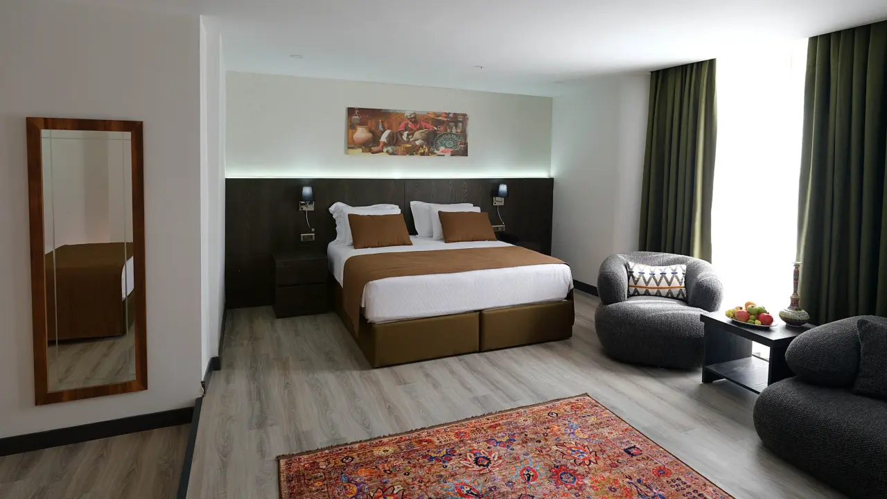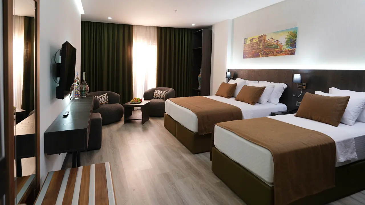 Park Dedeman Midyat, toplam 95 odasıyla misafirlerine konforlu bir konaklama deneyimi sunuyor. Tüm odalar, balkonlarıyla birlikte doğal gün ışığı alarak ferah bir atmosfer sağlıyor. Bu yapı, farklı konaklama taleplerine karşılık verecek şekilde esnek bir dizayn sunmakta. Otelin geniş lobisi, gün boyunca dinlenme ve sosyal etkinlikler için ideal bir alan oluştururken, teras katındaki restoran, sabahları açık büfe kahvaltı ve gün boyu à la carte servis imkanı ile dikkat çekiyor.
