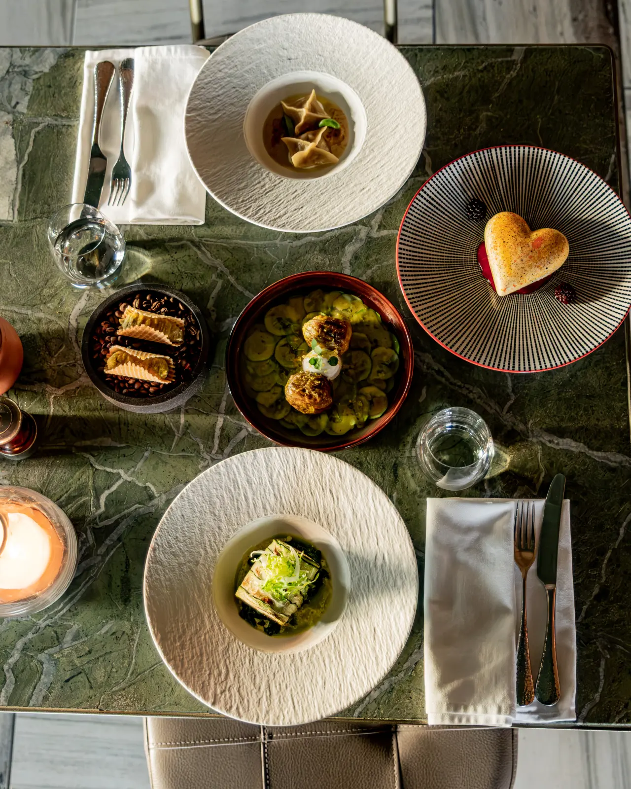Executive Şef Şafak Erten’in tasarladığı altı aşamalı Sevgililer Günü menüsü, Anadolu'nun zarafetini modern bir dokunuşla harmanlıyor. Menünün başlangıcında zeytinyağlılar, deniz ürünleri ve özenle seçilmiş malzemeler dikkat çekiyor. Bu lezzet yolculuğu, misafirleri romantik bir atmosferde ağırlarken, her tabak adeta bir sanat eseri gibi sunuluyor. Günden geceye geçerken, tatlıların kapanışta sunduğu eşsiz lezzetler, duygusal anılar yaratmak için tasarlanmış. Aşk dolu anların tadını çıkarırken, bu özel menü kendinizi şımartırken aşkı da sofranıza taşıyor.