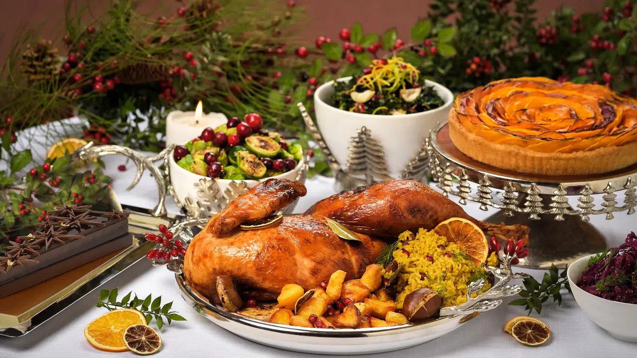 Menünün başlangıç kısmında, sıcak bir karşılama sunmak üzere zencefilli balkabağı çorbası yer alıyor. Çorba, yılbaşı sofrasında misafirleri karşılayan ilk lezzet olmasının yanı sıra, aromatik dokunuşlarıyla damakları da şenlendiriyor. Ana yemek olarak, tarhun, kekik ve biberiye ile marine edilmiş, özel kemik suyu ile fırınlanmış hindinin yanı sıra zengin bir yöresel tat sunuluyor. Hindiye eşlik eden kestaneli pilav, Brüksel lahanası, fırında patates ve tatlı patatesle hazırlanan soğan turtası, her biri ayrı bir lezzet deneyimi sunuyor.